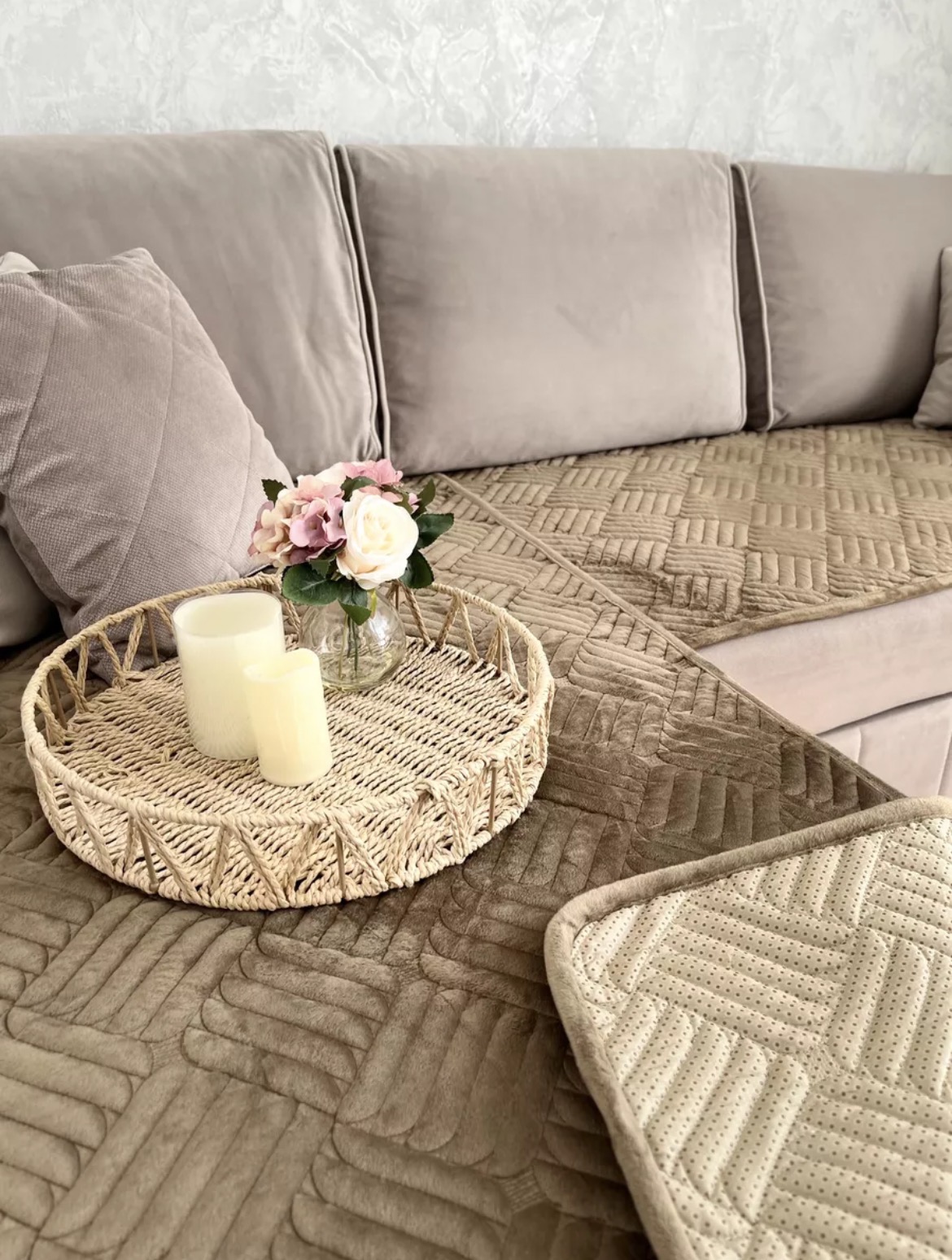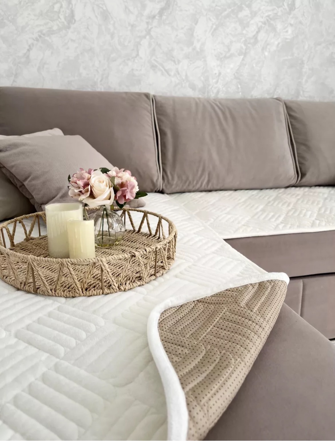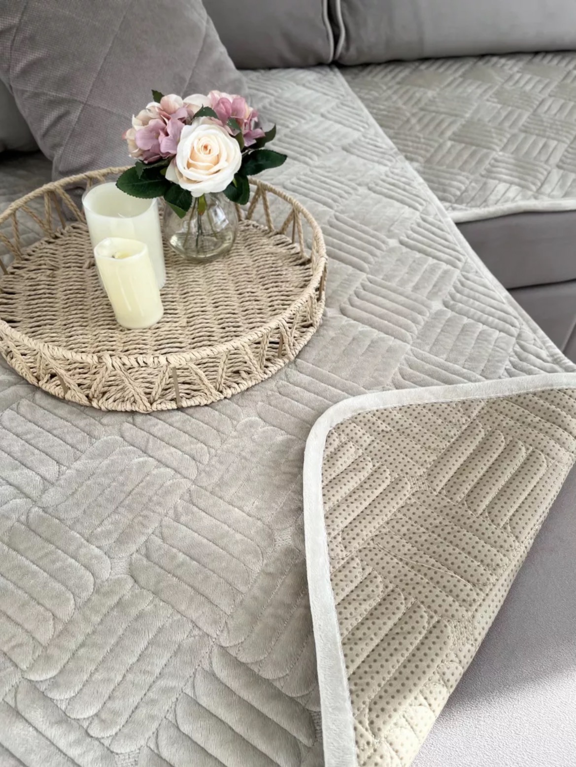 Բամզոցի նստատեղի ծածկոցի հավաքածու սիլիկոնե կետիկներով։ Սիլիկոնի կետիկների շնորհիվ ֆիքսվում է բազմոցին և չի շարժվում։ Լվացվում է լվացքի մեքենայով։